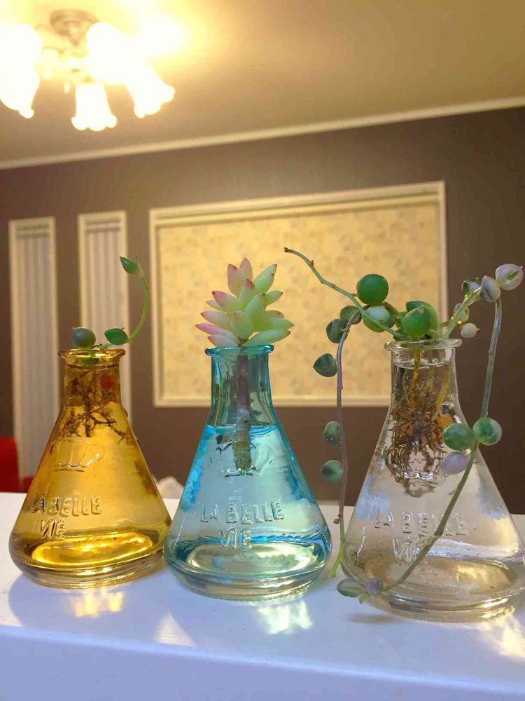 えーーーーー💓かわいい!どこのですかー? ダイソー?? 私も水耕栽培やり始めたけどびっくりするくらい根っこ出ましたよ(’-’*)♪ フォローさせてください!!