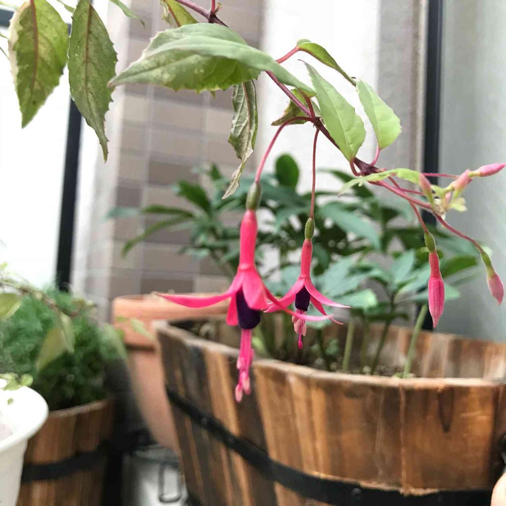 フクシアは可愛いですね😍😍😍私も11種類を育てています。大敵は、夏の蒸し暑さだそうです。小まめな花がら摘みと植木鉢の中の清潔さを保つ必要があるそうですね😊😊😊😊