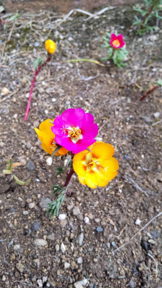 花壇で挿し木したマツバボタンが次々と咲いています。