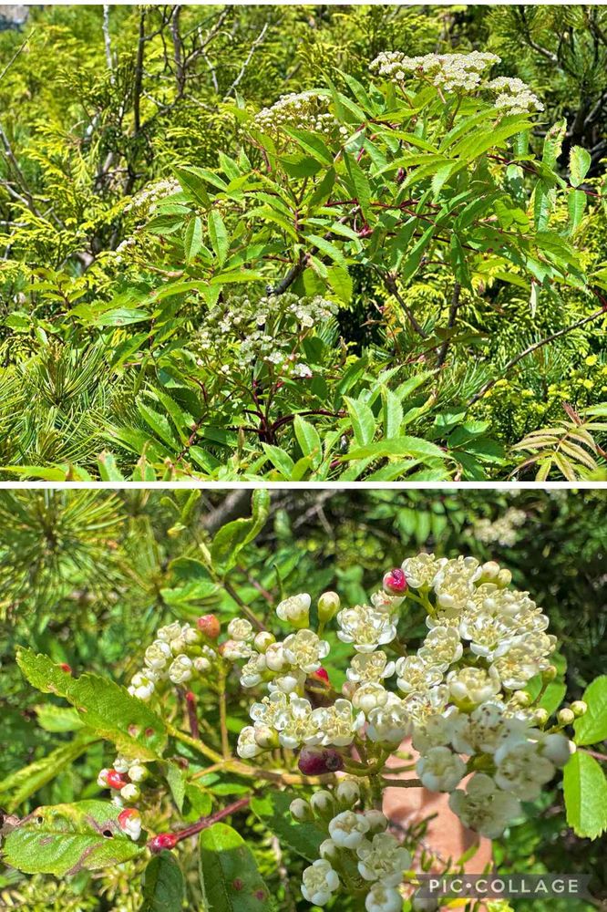 北海道では街路樹によく使われるナナカマドですが、いくつか種類があり、ここの高度からいうとタカネナナカマドかもと見てみましたが、花数が多くて、葉の鋸歯が前半分にしかないことから普通の「ナナカマド」でいいと思います😊 亜高山あたりまでは自生するし…