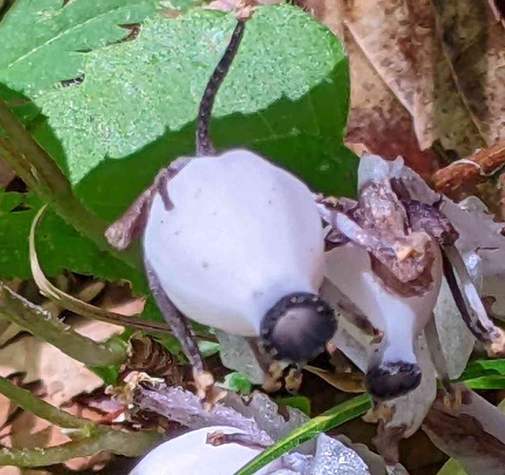 ギンリョウソウは上手く受粉すると、こんな目玉オヤジみたいな姿になり、中には細かいタネが出来ているそうです。