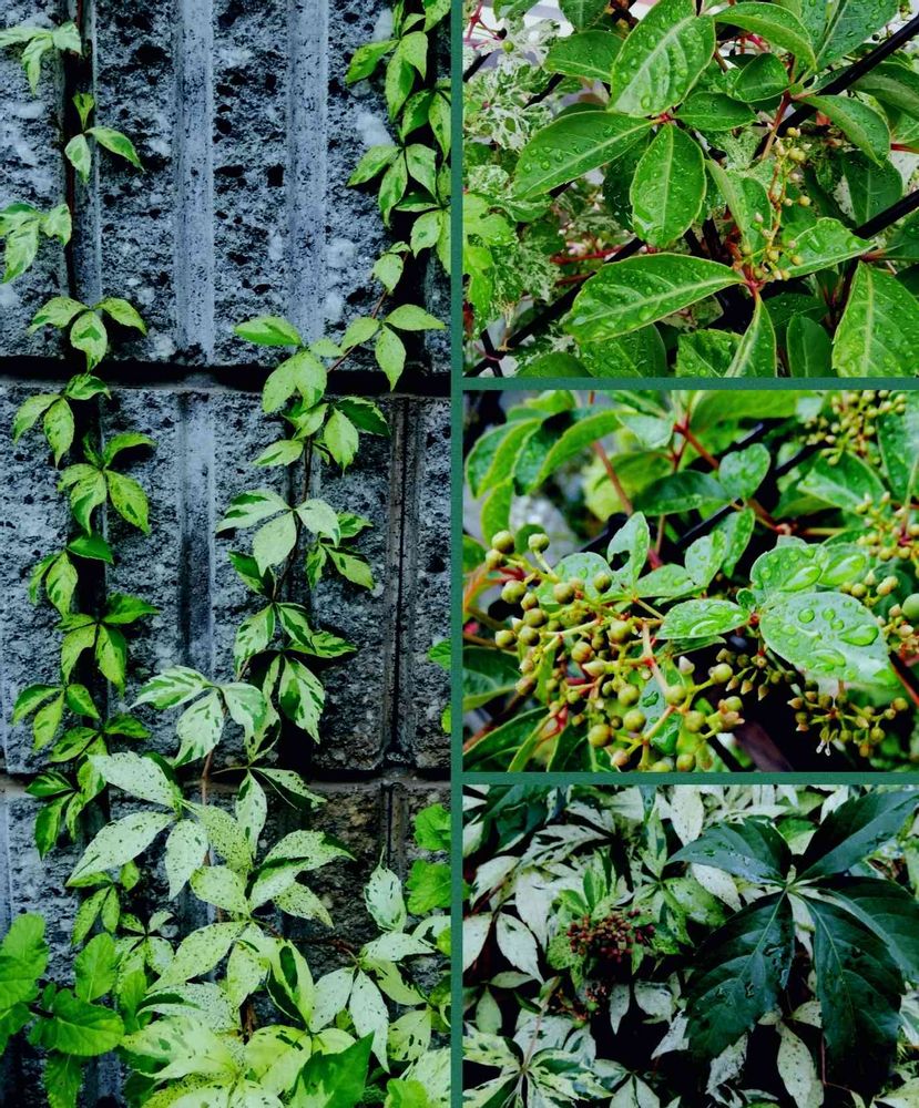 ヘンリーヅタがものすごい勢いで伸びています💚右側上から2つは野葡萄と競争のようにフェンスに。右側一番下と左側は斑入り…寄せ植えに入れて垂らしたつもりがいつの間にか脱走してブロック塀を這い上がっています😅まっ、綺麗だからいいか~🤭