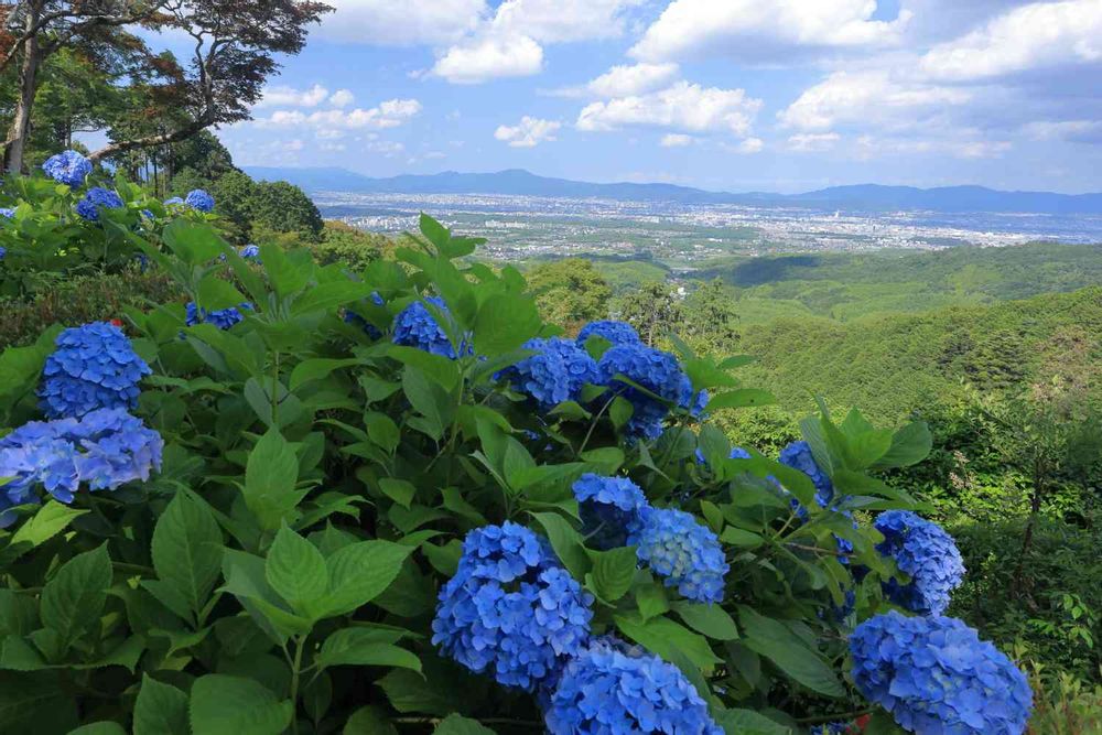 京都西山の見晴らしの良い高台から、あじさい越しに京都市街を一望する景色は圧巻です。