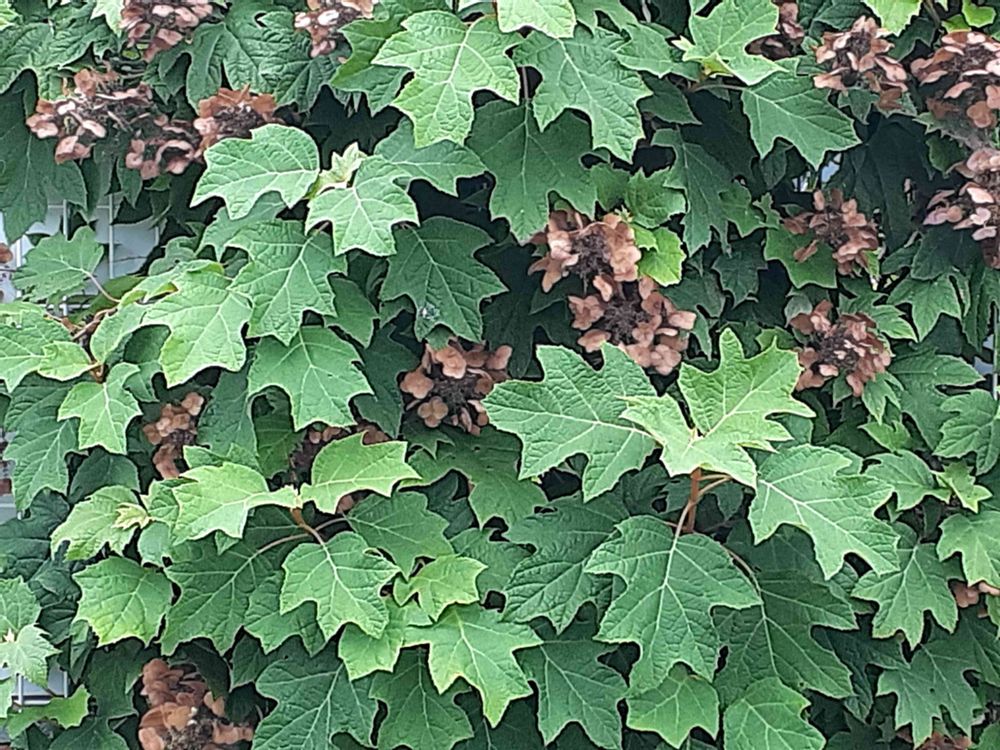 のらくん、カシワバアジサイはこうして色の変化を楽しめる花ですよ。