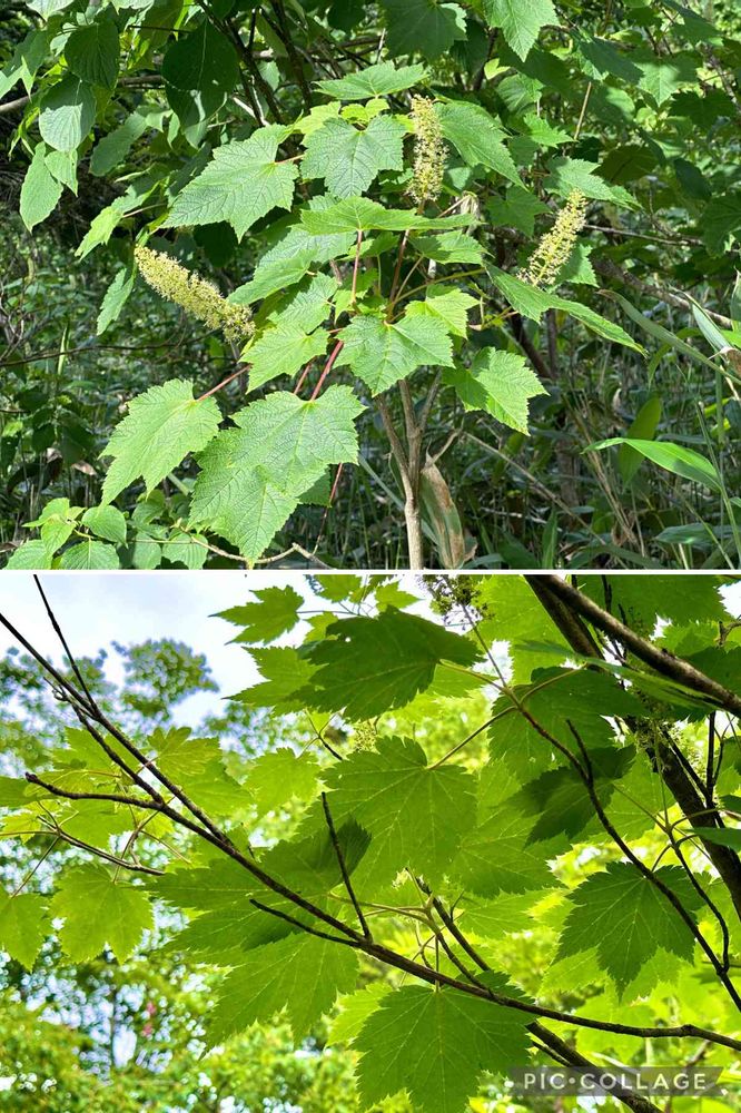 かなり激しく裂けたカエデみたいな葉っぱに上向きの花穂が立ち上がっています。
