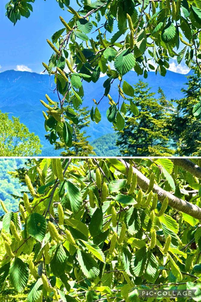 これはシラカバ(シラカンバ)の仲間で、シラカバよりずっと高いところに生える「ダケカンバ(岳樺)」の果穂で、上向きないし横向きに付きます。
