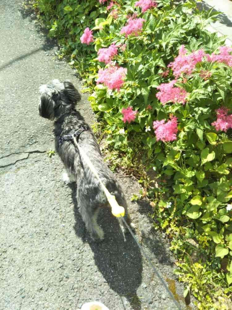 おはようございます。散歩中のツーショット。最近は写真を撮りすぎて、カメラ目線を避けられる(TT)