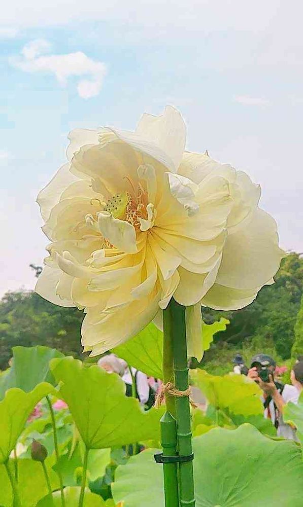 さん、たぶん普通の蓮より頭が重いですもんね😅私も支柱がないと支えきれないんだと、たまたま人間の目に触れて大切にされてるけど、自然界では折れたりしそうです。