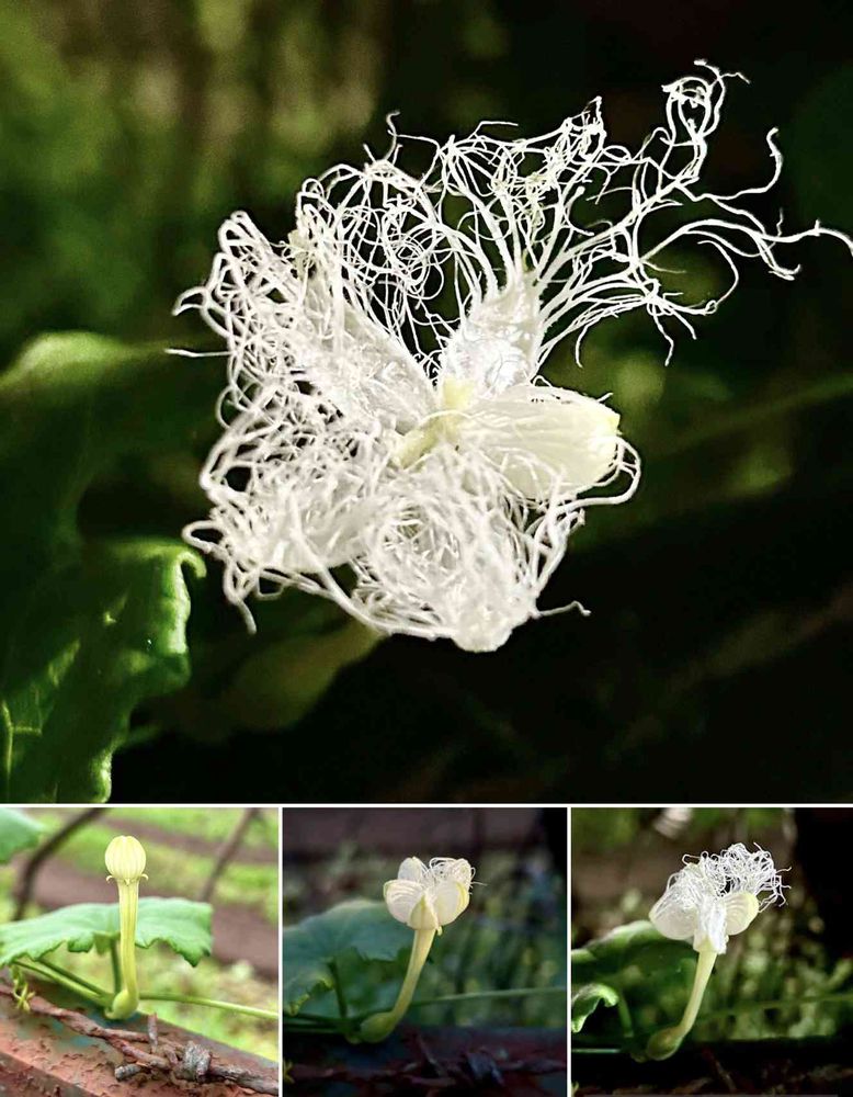 この糸状な物は花びらなのか、蕊なのか、まか不思議な花、植物ですよね。又月下美人の様に夜咲いて朝には萎むとは。余り人に見られたくないのかな