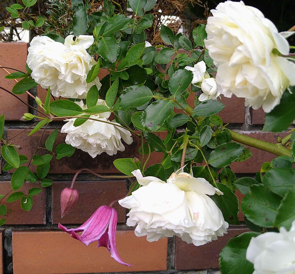 バラ・ホワイトメイディランドとクレマチス・エトワールローズ✨