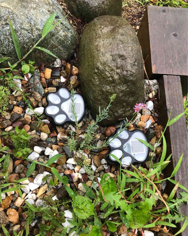 ほんとは玄関に誘導するように設置したかったんですけど、踏まれちゃうので花壇の横に設置しました。
