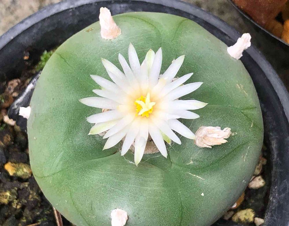 トゲがないサボテン、翠冠玉です🌵。サボテンの花が咲くと、嬉しさは別格ですネ😊💕。