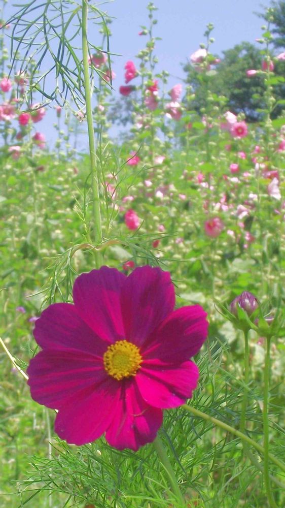 タチアオイをバックになぜかコスモスが…