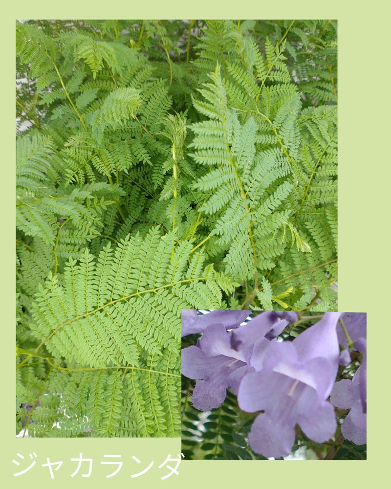 ジャカランダの苗木が〜30センチほどで、観葉植物と、タグ付け🌿