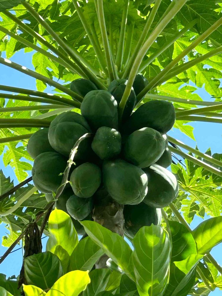 だいぶ大きくなってるので青いうちに採ってパパイヤイリチ〜(パパイヤ炒め)にして食べたい😆💕