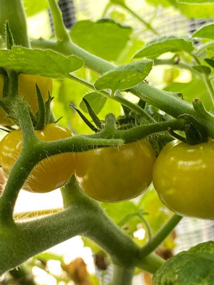 これは黄色いミニトマトです 触るとやわらかで甘くてトマトではないみたいです💛