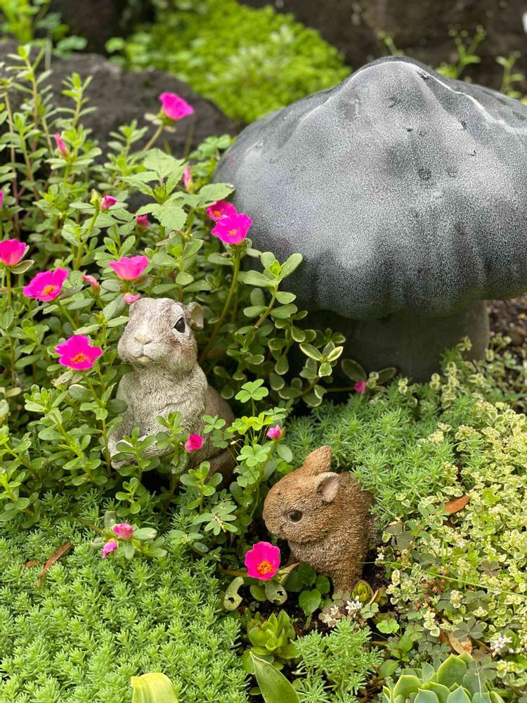 キノコ🍄の森🌳🍃✨️のセダム畑で過ごすうさぎ🐇🐇親子💞