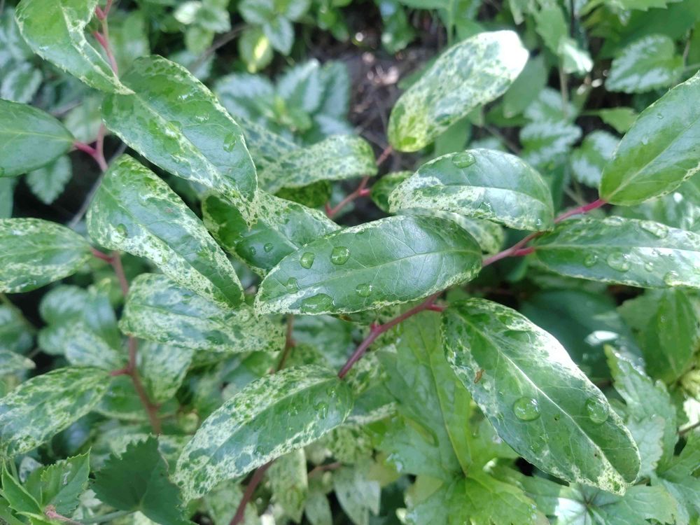 斑入り葉が美しく、寄せ植え材料として小株が売られていますが、シッカリ低木です。