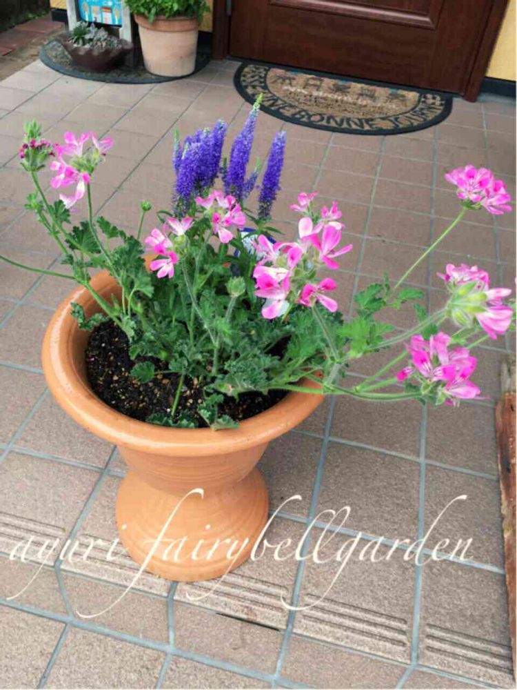ジンジャーゼラニウムも、半額SALEで、今日は、沢山幸せ(*^◯^*)新しいテラコッタ達も、大切に長く使おう。このジンジャーゼラニウムとベロニカも、ホワイトの鉢植えにしたかったけど、これだけは、持ってるプラ鉢で我慢😎