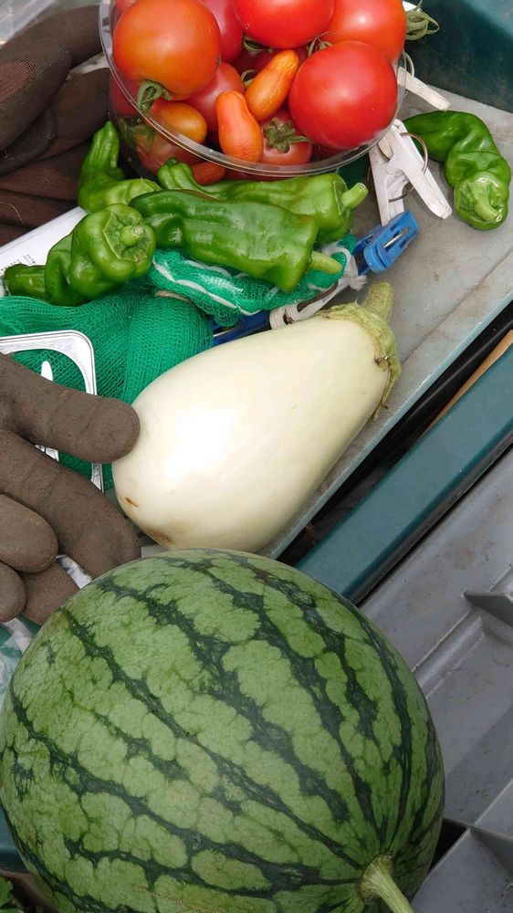 スイカ、白ナス、シシトウ、ミニトマト