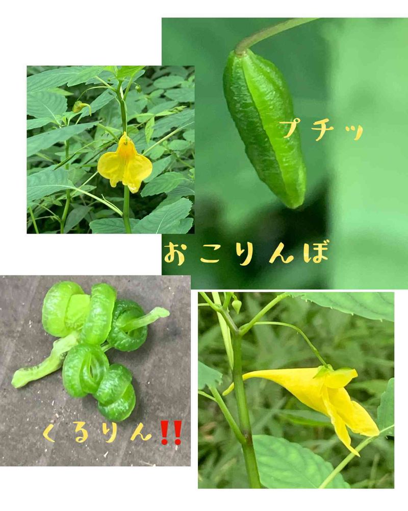 茎や葉は多くの水分を含んでいます。茎はやわらかく、赤色をしていて先のほうで分かれます。紫紅色の花はぶらさがるようにつき、形が帆掛け舟をつり下げたように咲いているので、このような名がつきました。花が終わると実を付けますが、昔の人は、手で触ると種が勢いよくはじけ飛ぶので、昔から「おこりんぼう」と呼んでいました。