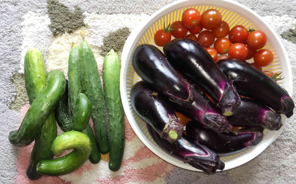 きゅうりは2か所からです。ネット誘引はまっすぐ、地面のはツルを触ってストレス与えたせいで、カールしています。自分が食べるので問題なしです。😋😁