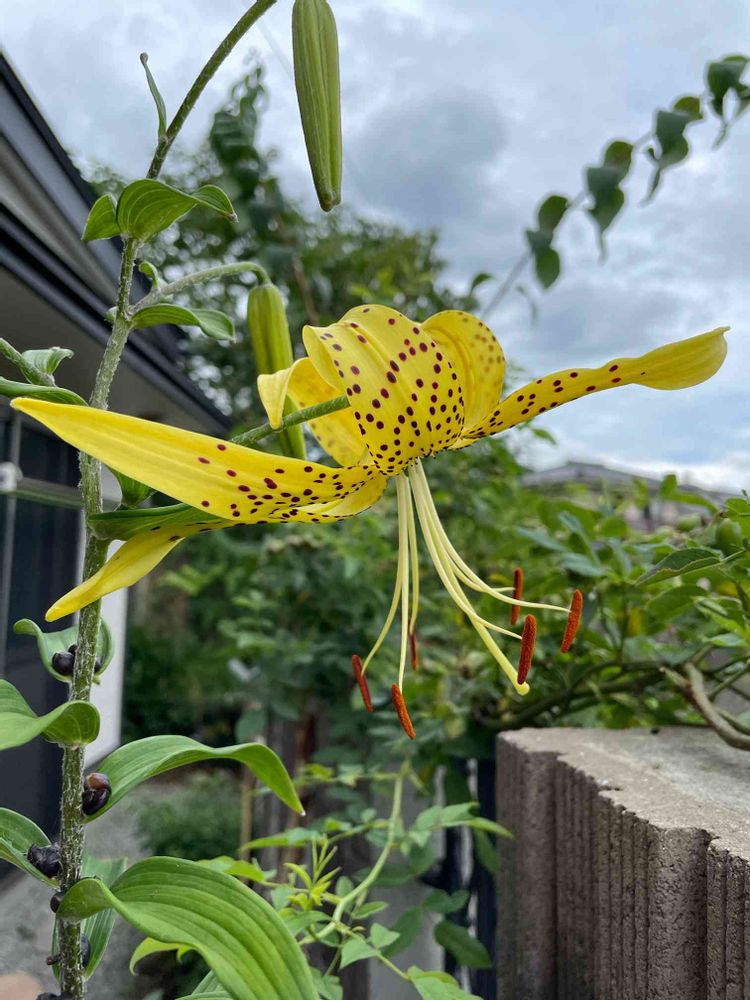 鹿の子百合にも似ていると思いましたが、ムカゴが付いているとの事でしたので鬼百合かと