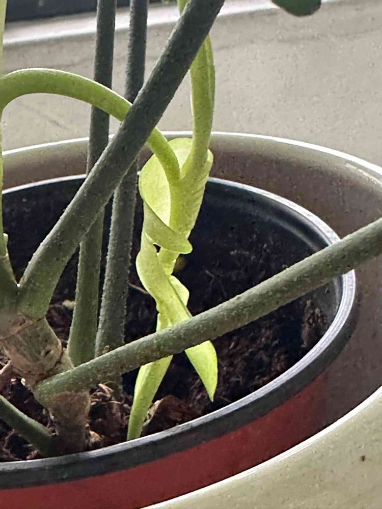 ヤッコカズラ、巻きがほぐれてきて、そろそろだね。楽しみ❣️