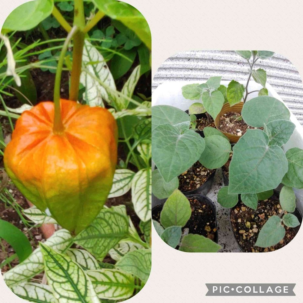 右側は食べるホウズキを今年種まきしました。今日あたり畑に植えたいと思います