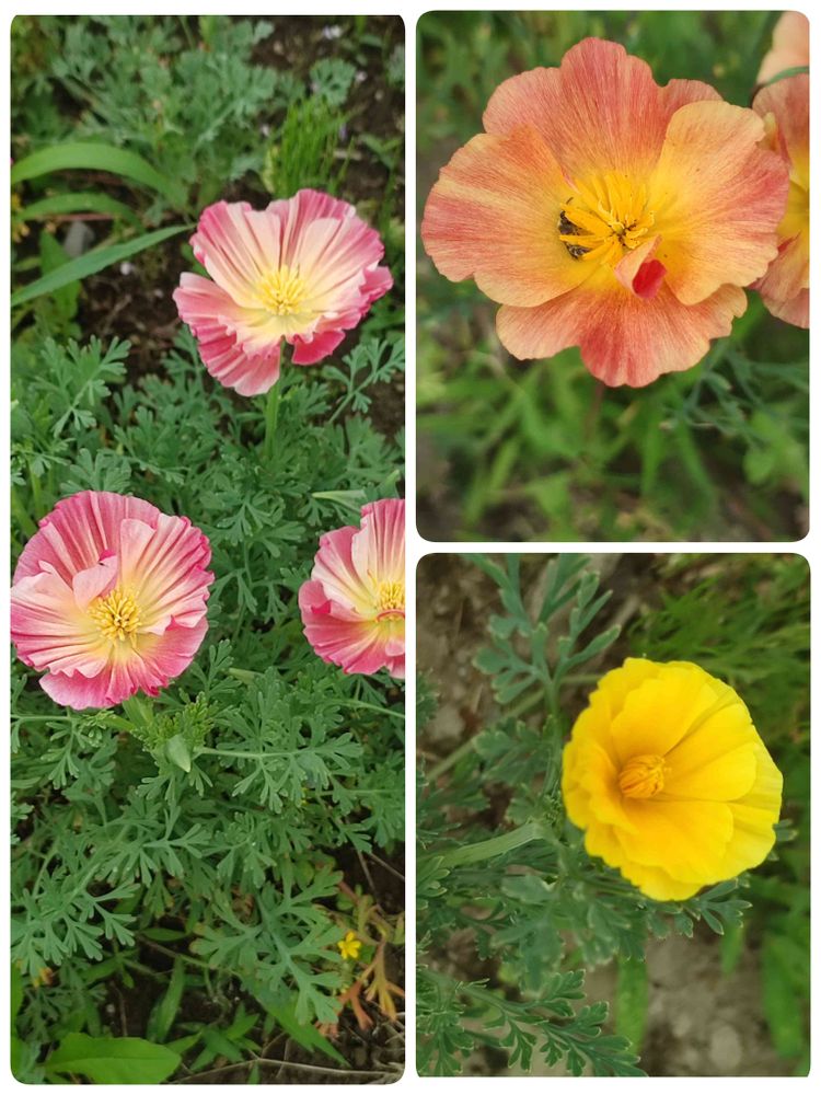 今年何度も種をまき、もう花菱草も終わりです。同じ種袋から左が1番に咲き、右上、右下と咲きました。