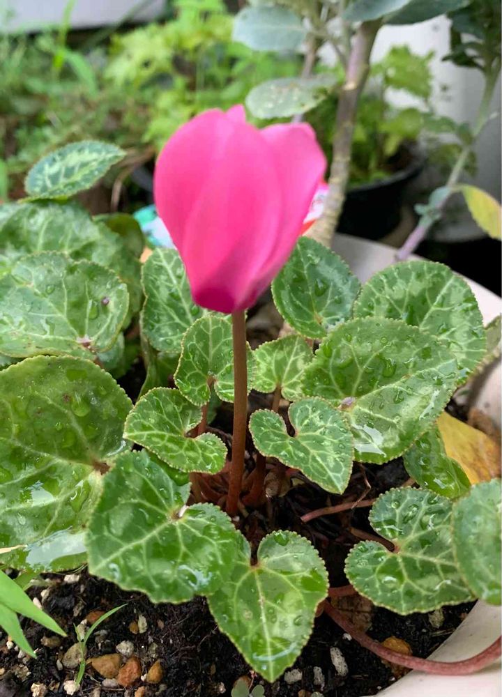 蒸し蒸しの中、ガーデンシクラメンが咲きました🍀どういう事?