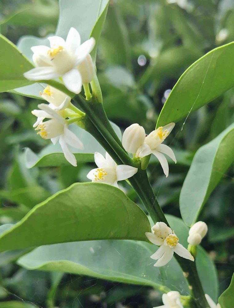 花、葉の奥に採りきれなかったキンカンの実が今もなっています😂