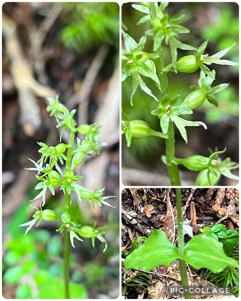 高さ15㎝ぐらいの小さな蘭を見つけました。Google先生によるとコフタバランみたいです。↗️お花のアップですが、2つに割れてる部分が唇弁です。わずか数ミリしかないけど、やっぱり蘭は唇弁がユニークですね。6/24長野県