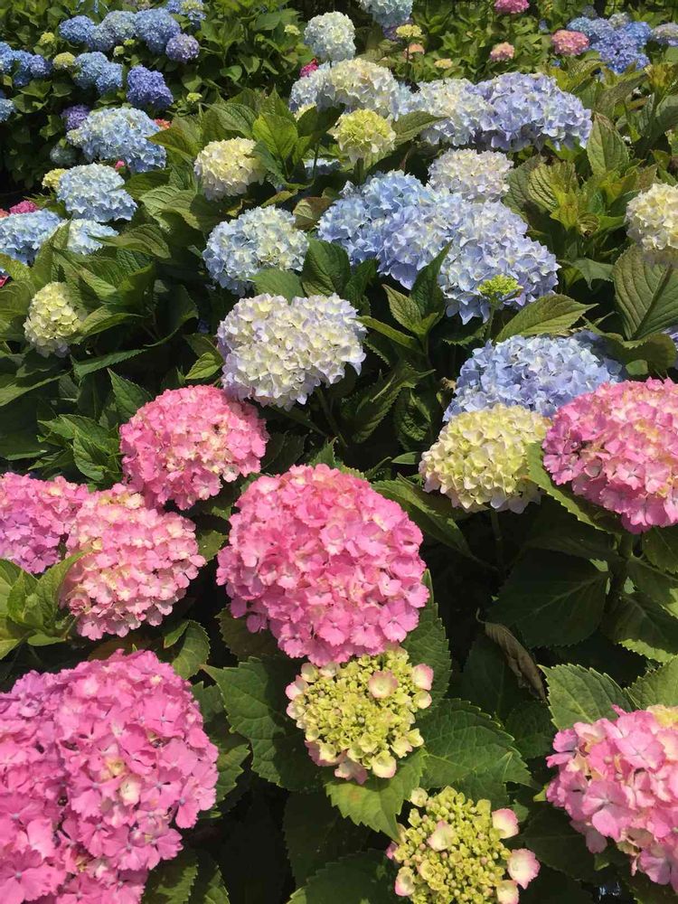 高尾山入り口の美術館の庭に咲いていた紫陽花がピンクと水色一緒に咲いていて可愛くて綺麗でした。