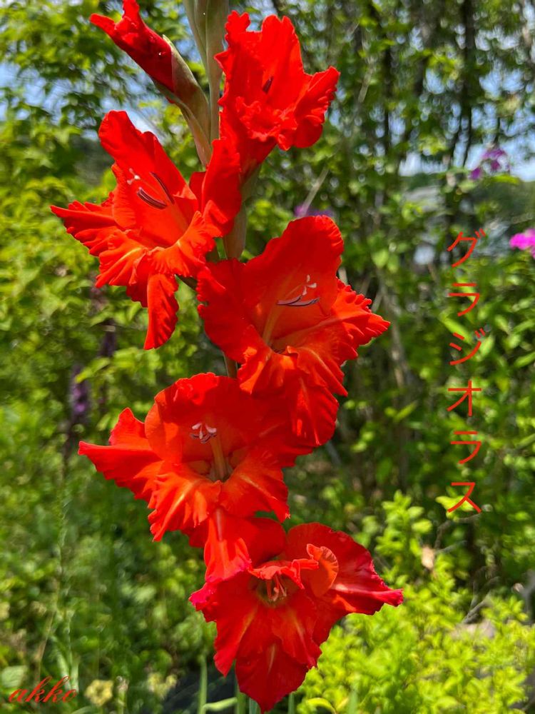 我が家の花畑にも、真っ赤なグラジオラスが咲きました