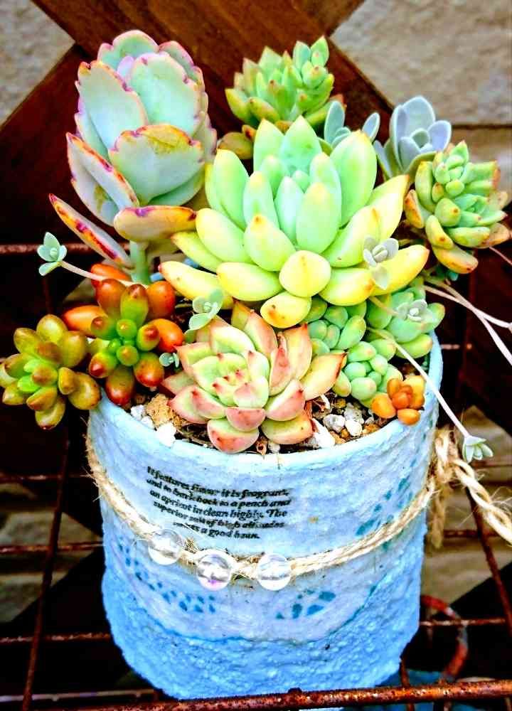 植え替えた時に行き場が無くなった多肉ちゃんの寄せ集め💚💜💓