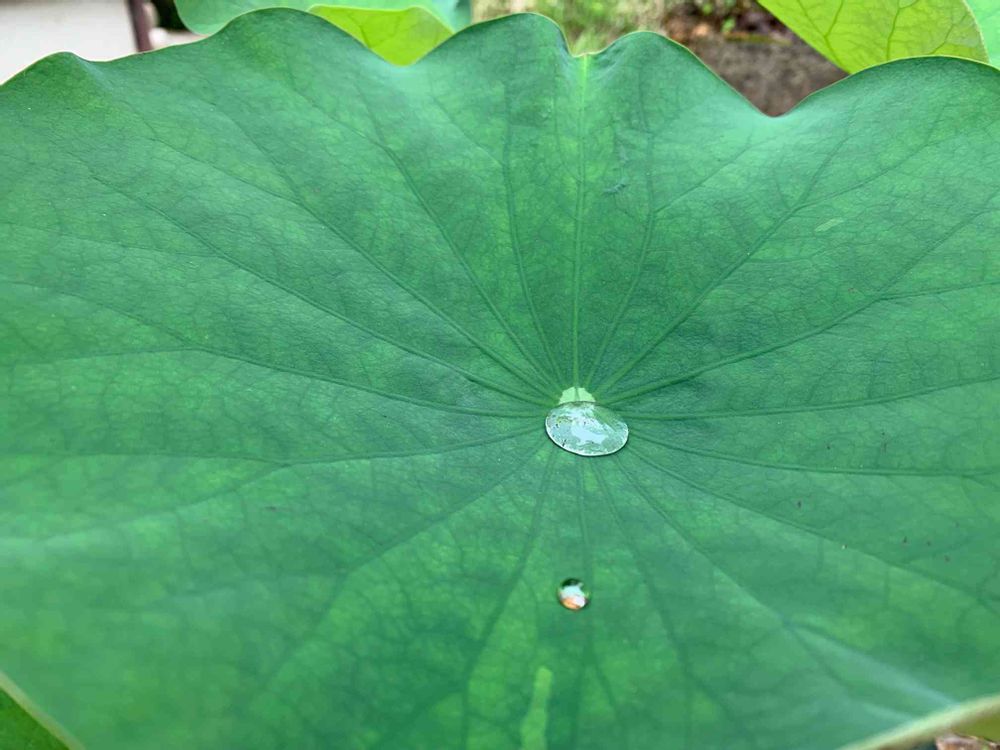 まだまだ始めたばかりの蓮栽培😅去年遅めだったから、まだ花芽は上がってきませんが🤣💦立ち葉に雨が溜まってました😅😀