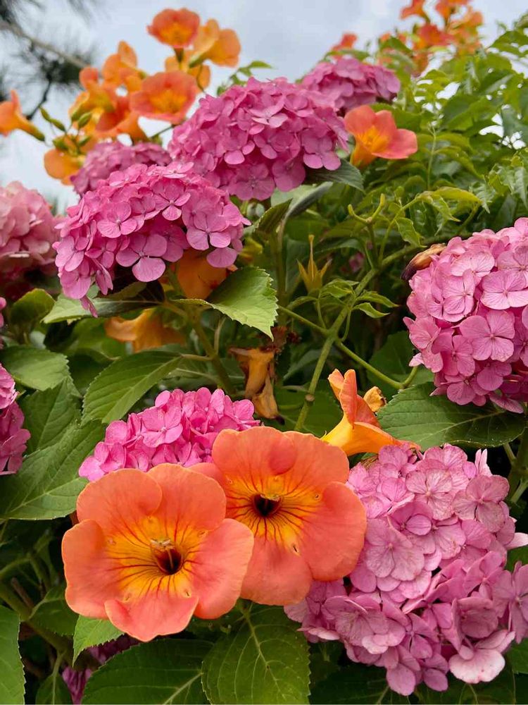 紫陽花とノウゼンカツラ❣️