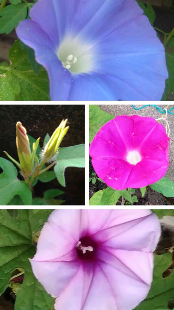 毎年こぼれ種で咲いてるのは上と下のアサガオで真ん中のピンクは昨年孫からもらった種からです🩷