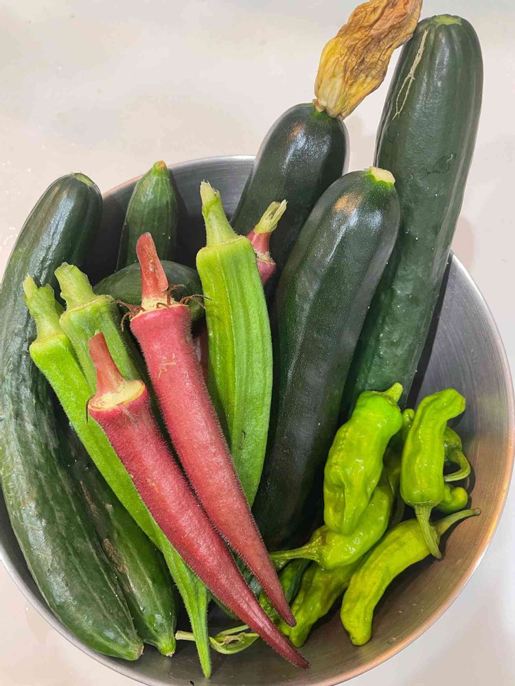 赤オクラ茹でたら赤じゃなくなりました😆群馬暑いですね🥵