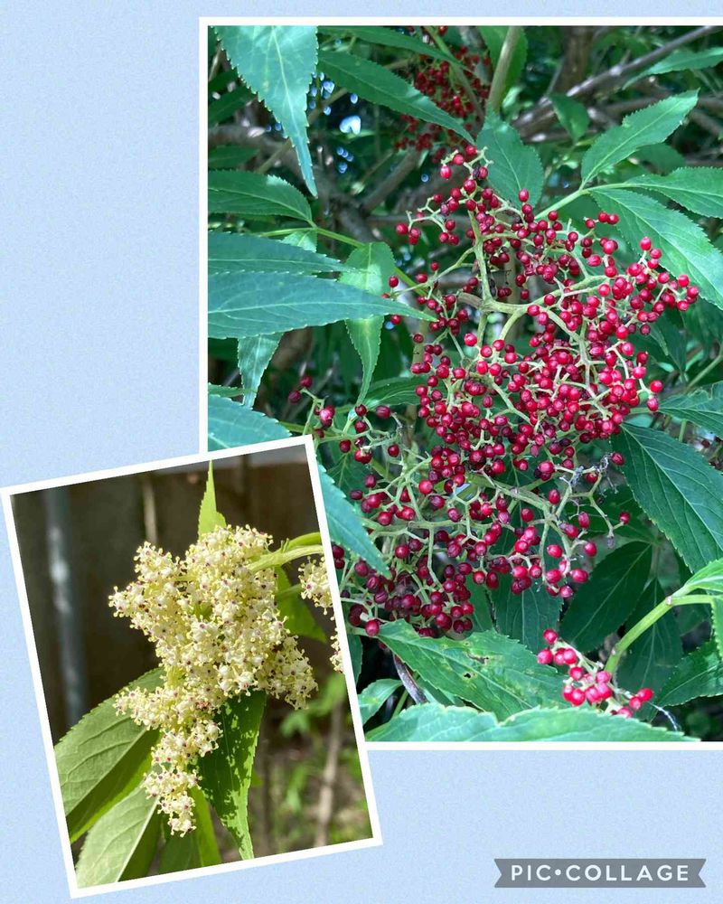 赤い木の実って、秋かと思っていましたが、夏にもう赤くなるニワトコさん