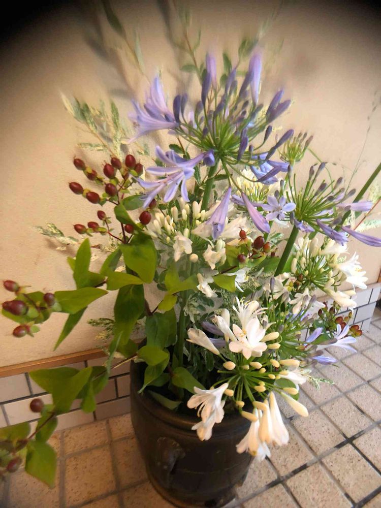 実家からアガパンサスの白とブルーを花泥棒して来ました٩(^‿^)۶お母ちゃんごめん🙇♀️
