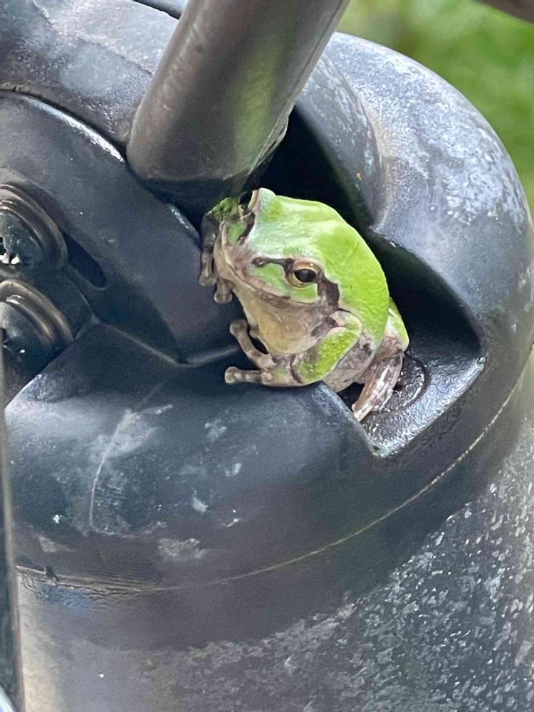ちっちゃなアマガエルちゃんみーっけ👍😊暑いのにどうやって生き延びているんでしょうね あんたは偉い🙇♂️🙏