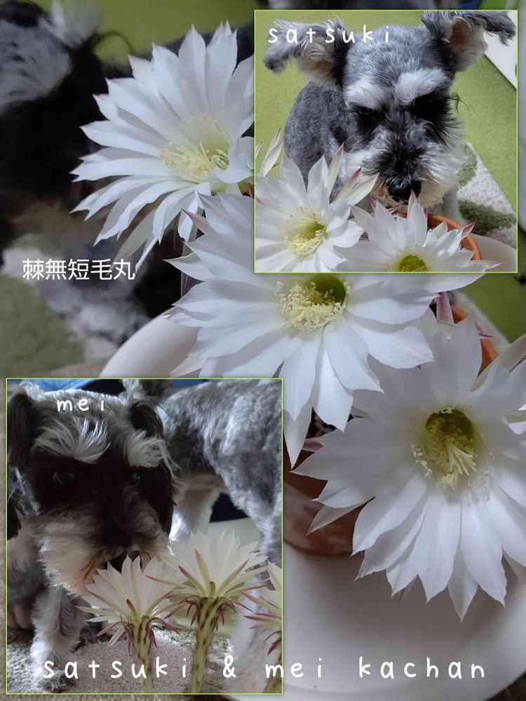 🌵のお花って本当キレイだよね~香りもあるの??今度咲いたら嗅いでみよう🤭サツキちゃんメイちゃん、トゲには気を付けてね~
