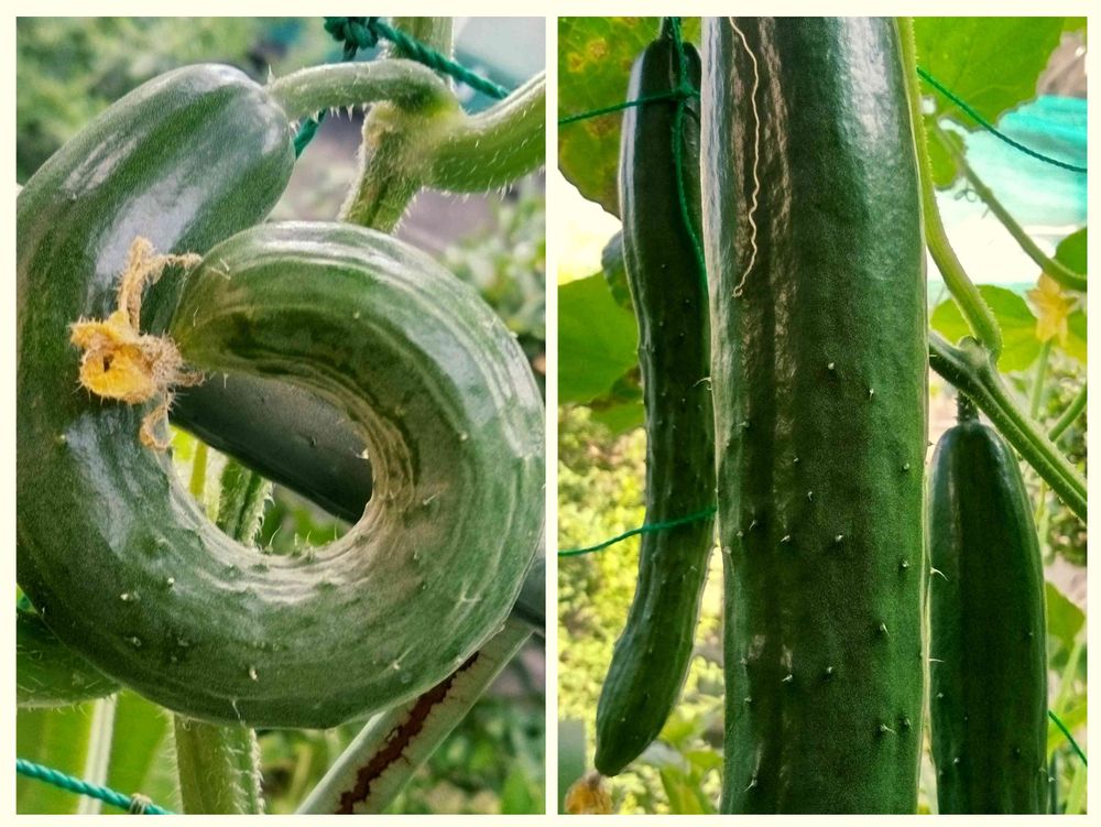 同じ百均の種からなんですが プランターが別で土の違いでしょうか 素直な子と ひねくれた子が育っております🥒