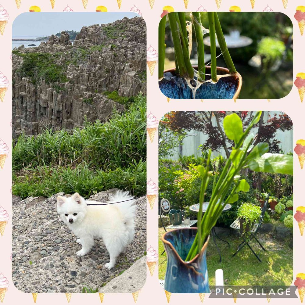 福をゴテゴテ岩🪨の上 歩かせるのが 危なかったので 私が 抱っこして 断崖近くまで 見に行ったら 夫が 「福を 落とすなよ❗️あんたが転んで 福を落としたら 大変だから 転ぶな‼️」と 福の心配ばかりしてた😅