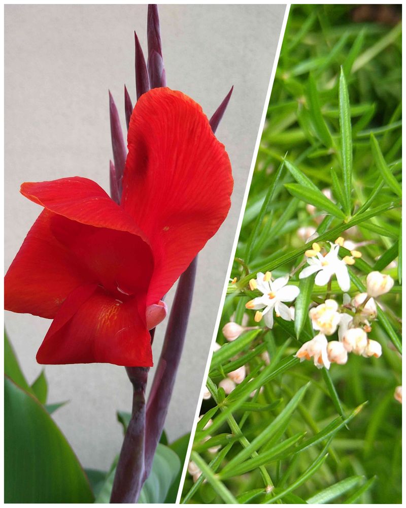今年で最後の投稿になりそうなカンナと観賞用のアスパラガスです。