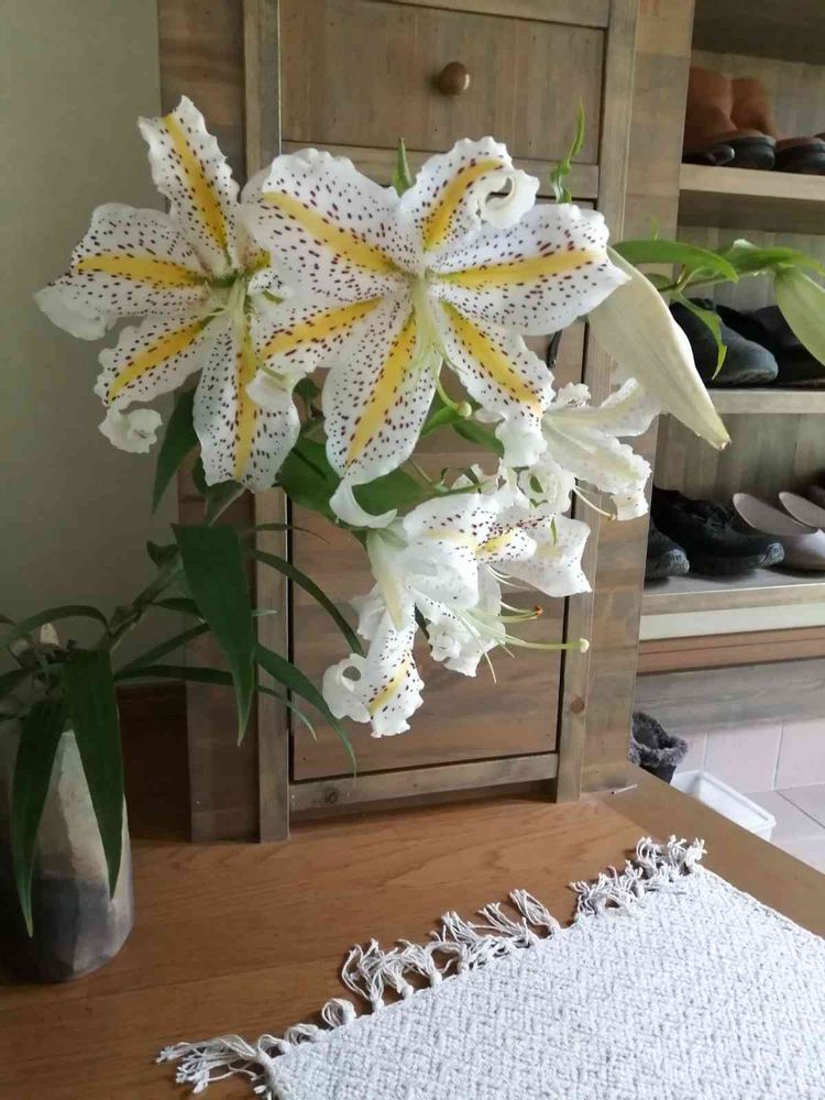 玄関に飾った花です、それにしても外は恐ろしいほどの暑さ、エアコン28度にして猫🐱と寝っ転がり寝てま〜す外地獄、中天国幸せしてま〜す。