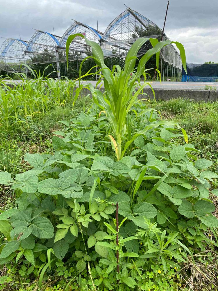 こちらは、枝豆に囲まれた甲州モロコシたち。