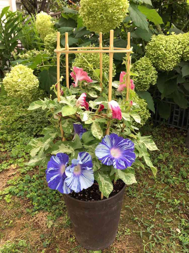 でも、ブルー1色のみの鉢も良いですよね😍大輪朝顔“江戸の朝空“だったかな!